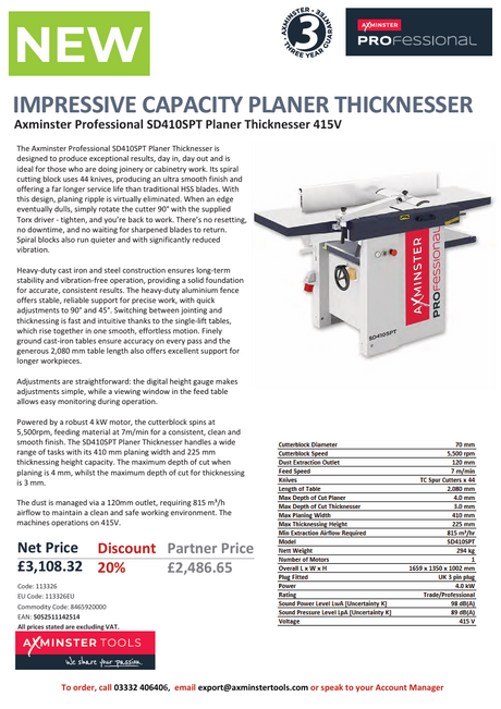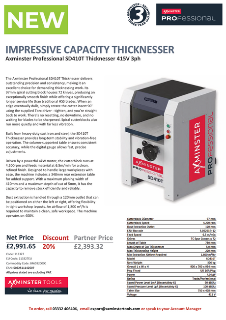 Þykktarhefi./Afr.SD410SPT Prof. 415 3ph.