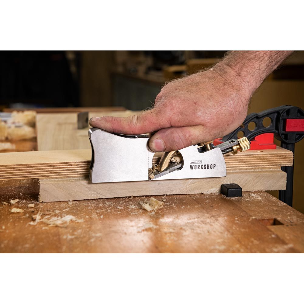 No other plane design of this type has quite as much versatility as the 3-in-1 plane. The Axminster Workshop 3-in-1 can be a Shoulder plane, a Bullnose or a Chisel plane. Changing from one function to the other is simply a matter of using one or other nosepiece or in the case of the chisel plane, by ignoring the nosepieces completely.