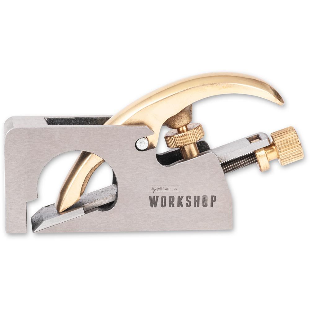 Our 3-in-1 is a robust plane offering three distinct functions in one precision machined package. Cast from fine grey iron, precision ground and polished to ensure accurate results. The sole is flat and the sides are square to the sole. The 28mm full width blade is micro adjustable for precise control of the depth of cut. The blade is a fraction of a smidgen wider than the body making it easier to work into a corner. The blade is O1 steel, offering excellent edge retention. It comes with a 25° bevel and will only require honing before use The polished brass, arched lever cap makes the plane comfortable and easy to use. A shim between the body and shoulder piece allows you to vary the width of the mouth for fine or coarse work.